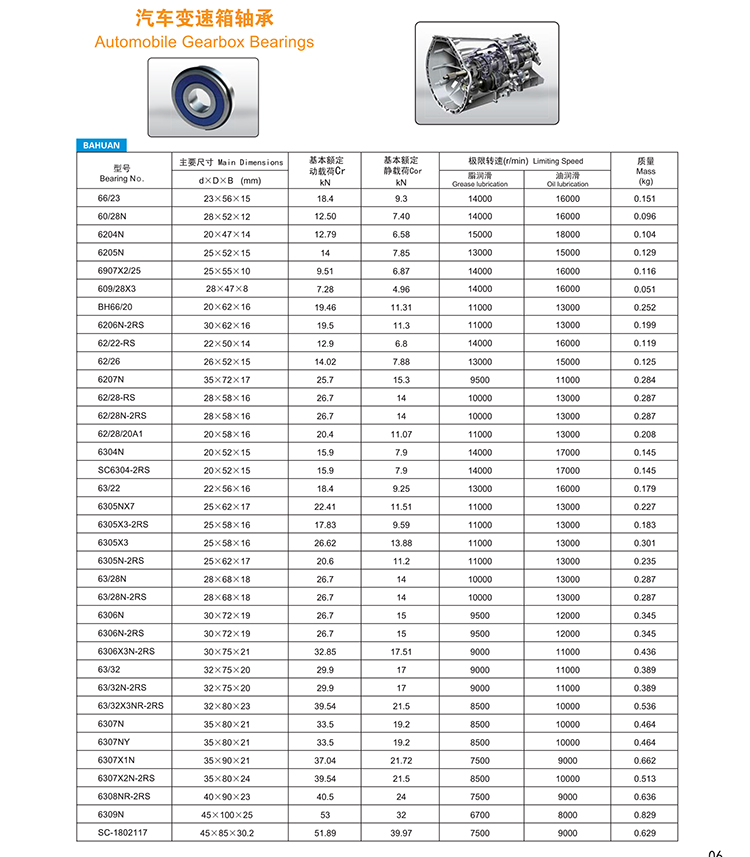 汽車變速箱軸承